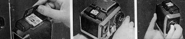 This convenient features offers many advantages. It makes [it] possible to change film in the middle of a roll (black-and-white to color, color to black-and-white, indoor to daylight, etc.) without a loss of a single exposure. It also permits you to preload several backs. It is possible to shoot continuously without stopping for reloads.