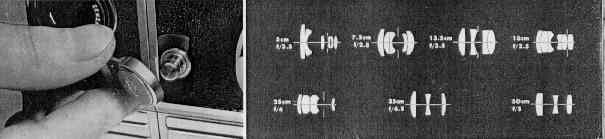 Lenses are quickly and easily interchangeable on the Bronica S. The normal 75mm lenses, the 50mm wide angle and the 135mm telephoto are equipped with quick-change, 1/6 turn bayonet mounts.