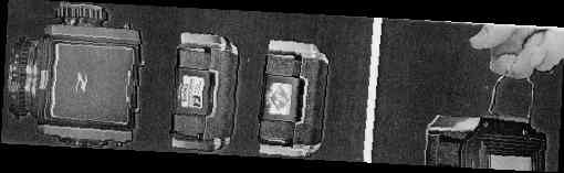 The filminder back is fully automatic and foolproof. It is equipped with a metal dark slide to prevent film from being exposed while the back is off the camera. This back cannot be removed until the dark slide is inserted, and while the back is off the camera, the dark slide cannot be withdrawn.