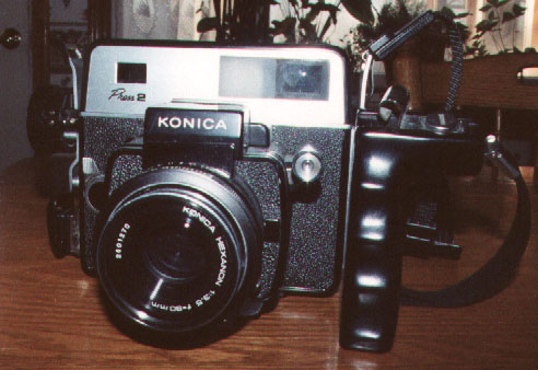 This is my Konica Press 2. A friend gave me a compete setup, 3 backs, 58,