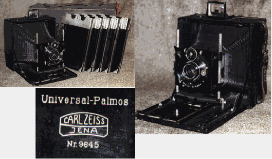 A rare and historic precision 5x4 inch plate camera from the first Zeiss period of camera manufacture, 1902-1909. Zeiss Protarlinse IV 143mm/250mm convertable lens in Compound shutter, lovely near mint condition and full working order, complete with original outfit case and five double dark slides.